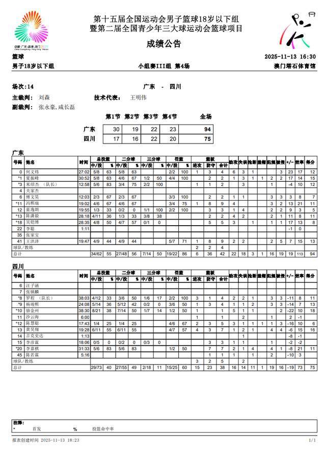 此役之前,广东U18男篮已经打了一场比赛,结果以102-80大胜湖北队。四川队则是84-72击败了吉林队。此番较量,获胜一方大概率能锁定本组头名。