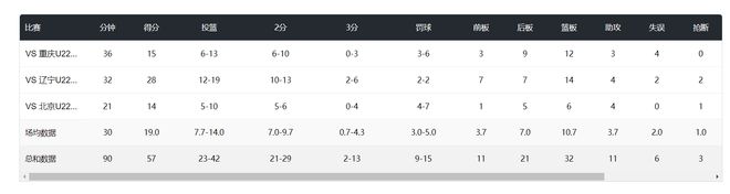 目前三场比赛冉珂嘉场均30分钟,拿到19分10.7篮板3.7助攻1抢断0.3盖帽,命中率54.7%,三分命中率15.4%,三分球投的的确烂,但她场均有3.7个前场篮板,她的篮板球能力非常强。